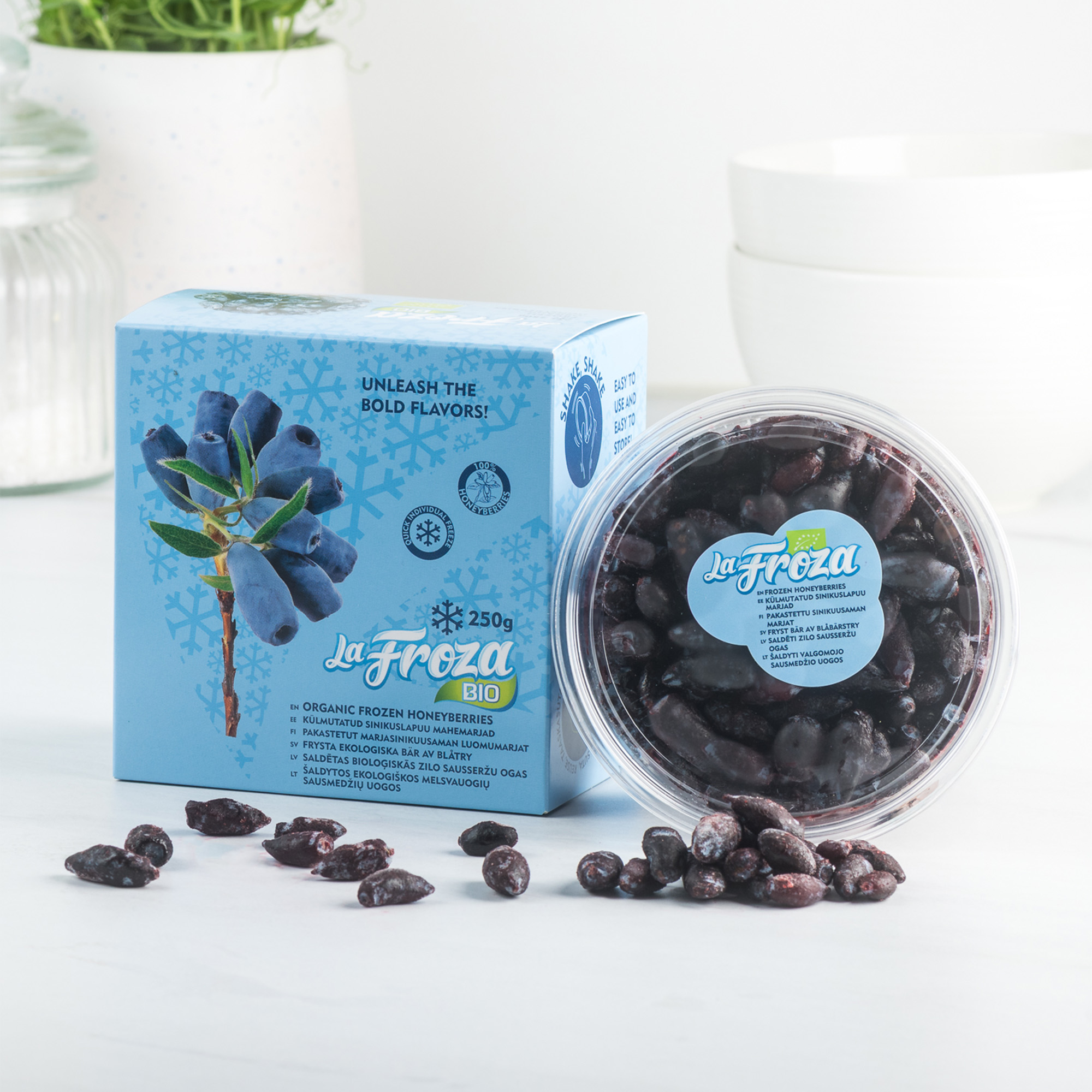 LaFroza Bio külmutatud mahedad sinikuslapuumarjad sobivad moosidesse, smuutidesse, küpsetistesse, magustoitudesse ja keedistesse. Kiirkülmutus aitab säilitada sinikuslapuu looduslikud ja kasulikud toitained, tagades kättesaadavuse sõltumata hooajast.